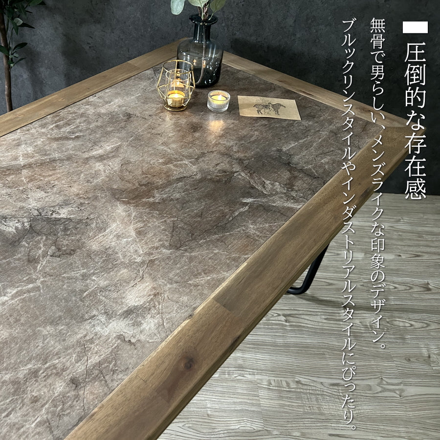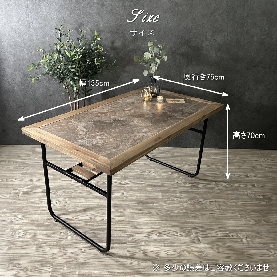 テーブル ダイニングテーブル 食卓テーブル 135cm幅 長方形 4人用 4人掛け アカシア 天然木 木製 メラミン アイアン脚 インダストリアル カフェ 132B