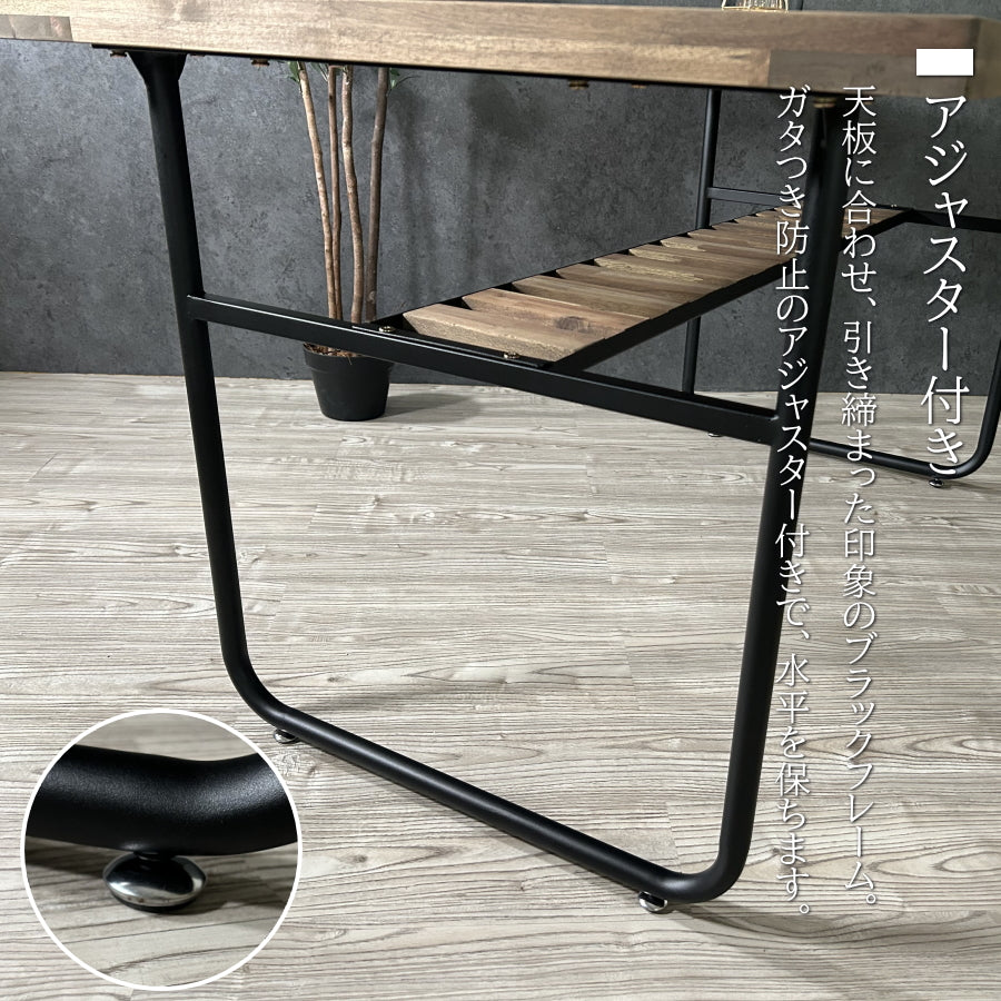 ウッドテーブル カフェテーブル 収納 インダストリアル 工業系 ビンテージ ヴィンテージ アンティーク ブルックリン 男前 メンズライク 無垢 棚 異素材 アジャスター