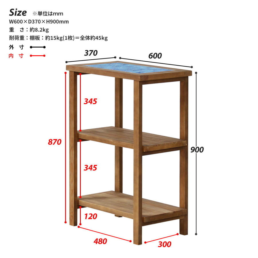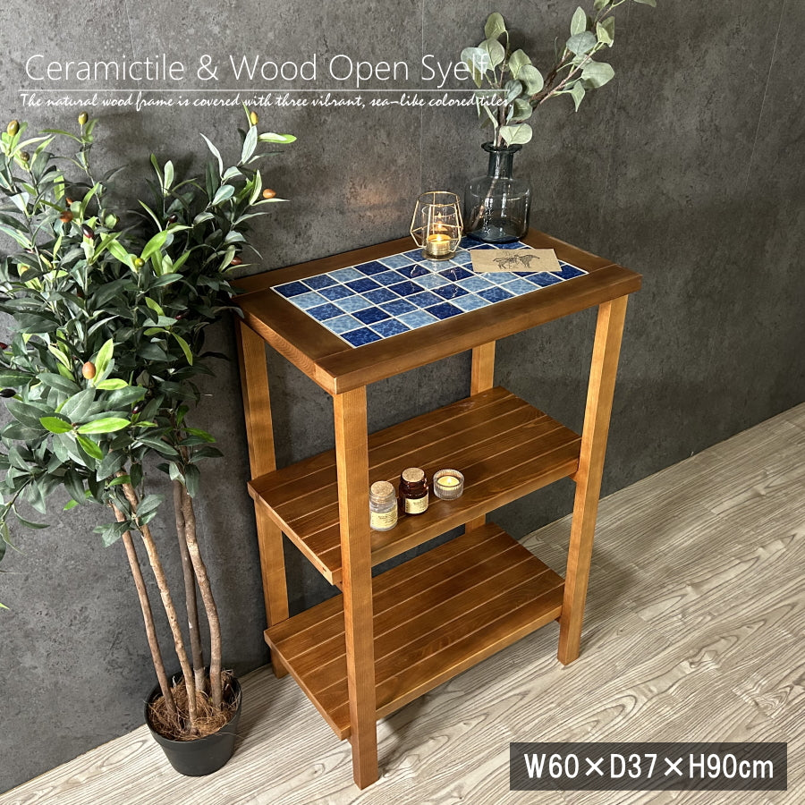 ラック 【数量限定特価】 シェルフ 棚 飾り棚 オープンラック オープンシェルフ セラミックタイル 無垢 おしゃれ 西海岸 ビンテージ レトロ ヴィンテージ 木製 ウッド 本棚 3段 60cm幅 送料無料(北海道・東北・沖縄・離島は除く)