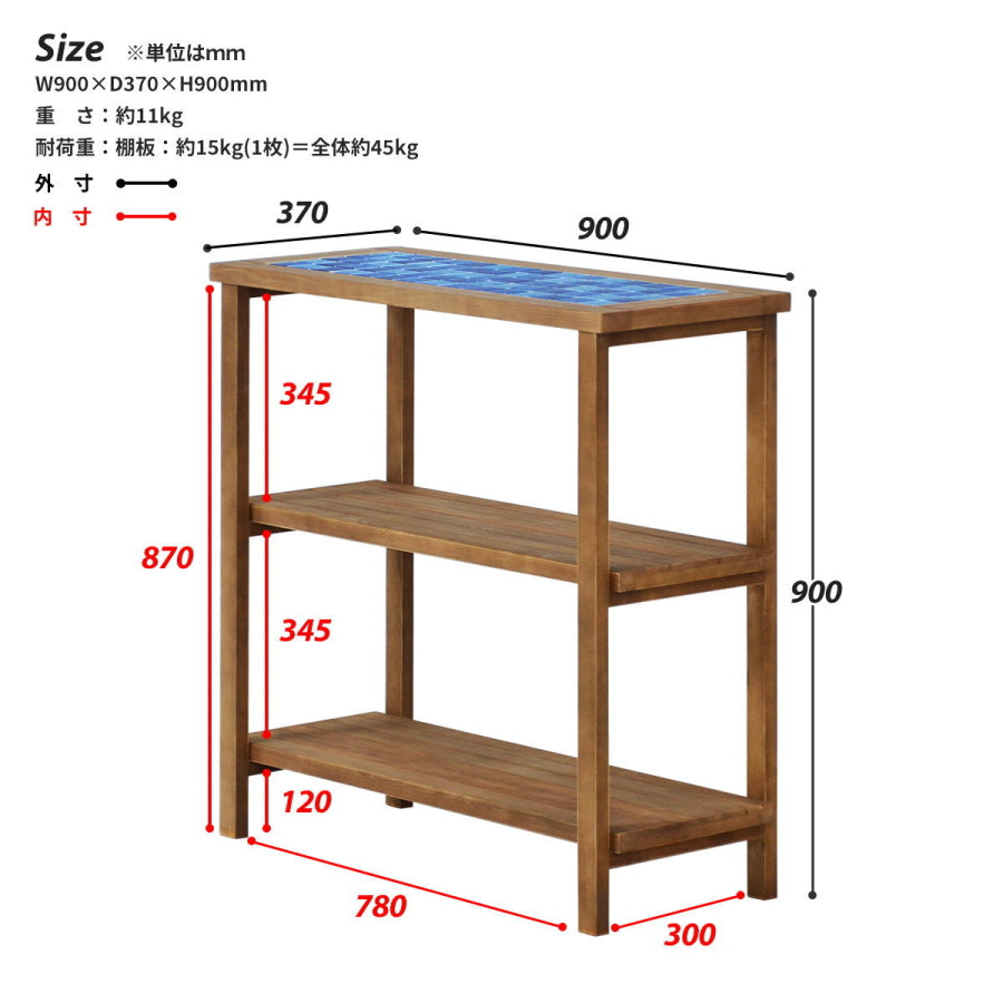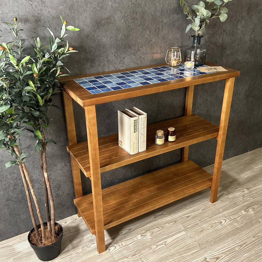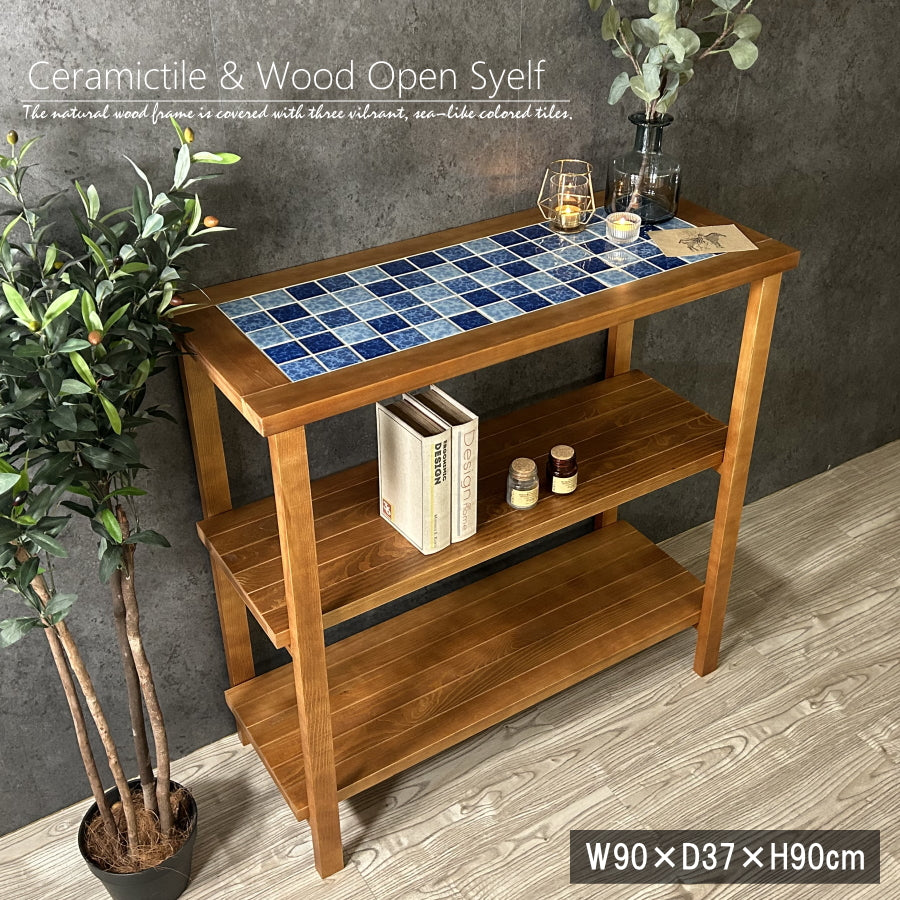 ラック 【数量限定特価】 シェルフ 棚 飾り棚 オープンラック オープンシェルフ セラミックタイル 無垢 おしゃれ 西海岸 ビンテージ レトロ ヴィンテージ 木製 ウッド 本棚 3段 90cm幅 送料無料(北海道・東北・沖縄・離島は除く)